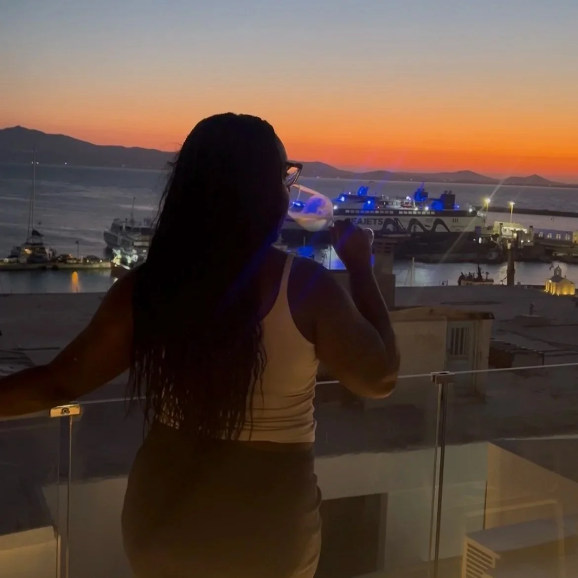 I’m used to traveling through Europe as a Black American. I’m used to the stares, the lack of personal space, and the cold but direct speaking. After 4 hours of that, I breezed through security and into the airport lounge. 10 minutes before my flight was ready to board, I walked to my gate. In Europe, most airports require you to take a bus to the plane. That was the case in Athens to board the Olympic Air plane to Naxos. My flight was short and sweet. Naxos has a small and quaint airport. One plane flies in and out at a time. The baggage claim is a small, walk-in closet-sized room. I met my driver at the airport, and we drove 15 minutes to Naxos Town, where I was staying.